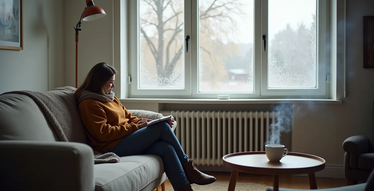 Le constat est souvent sans appel : dans une pièce chauffée à 21°C, un mur extérieur mal isolé peut afficher 17°C ou 18°C, voire moins. Selon les experts en isolation thermique, un écart de 3°C minimum entre l’air ambiant et la surface du mur suffit à créer un inconfort notable. Votre corps, dont la température de surface est d’environ 30-32°C, va rayonner sa chaleur vers cette grande surface froide, créant une perte énergétique continue que le chauffage de l’air peine à compenser. C’est la physique du confort asymétrique : vous avez chaud d’un côté (loin du mur) et froid de l’autre (près du mur).
